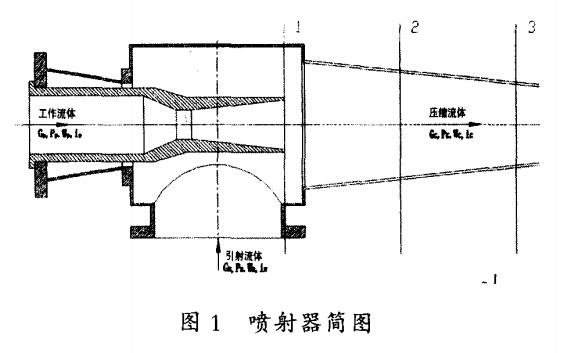 蒸汽喷射器原理图如下,喷射器的主要部件有:工作喷嘴,接受室,混合室,扩散器。